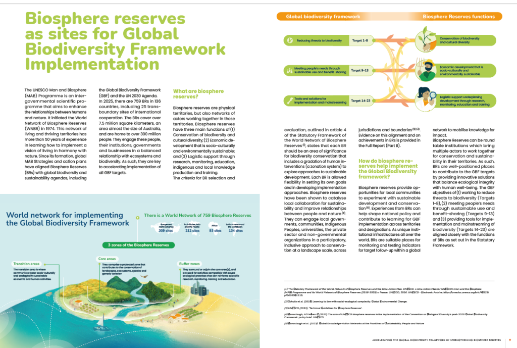 The report comes just in time for the 5th World Congress of Biosphere Reserves (WCBR), held in China in 2025. This congress provides an opportunity to review the progress and lessons of the past decade and to shape the new 10-year strategy of the MAB Programme. Authors hope this document will support the urgent task of building bridges between global sustainability agreements, inter-governmental programmes, and higher-education and research institutions.